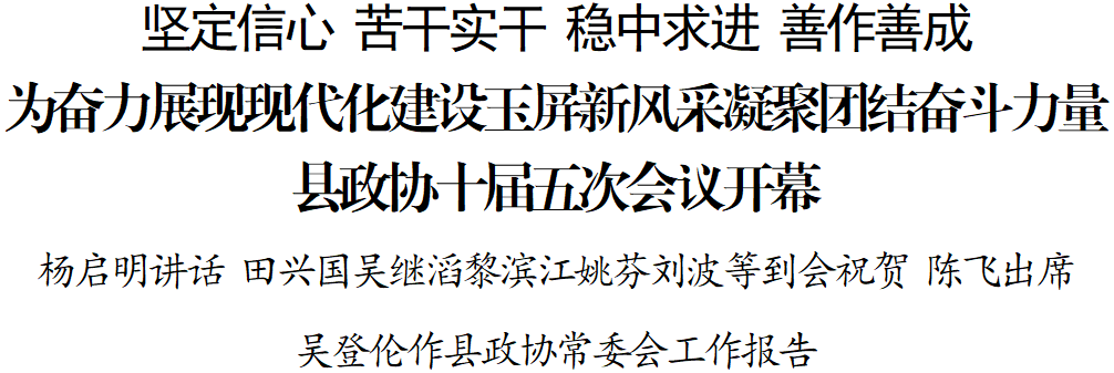 2月26日下午,中国人民政治协商会议第十届玉屏侗族自治县委员会第五次会议在县文化艺术中心开幕。